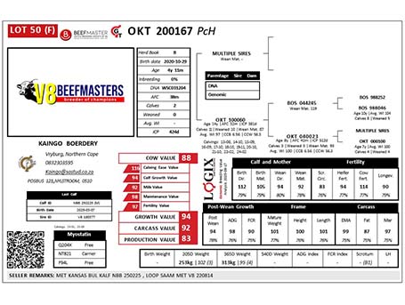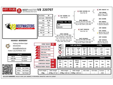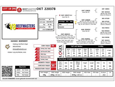 | Info 01 | Impressively muscled bull with excellent length and a well-structured sheath. A strong stud bull prospect. |