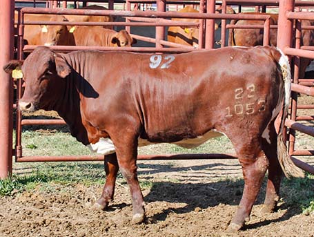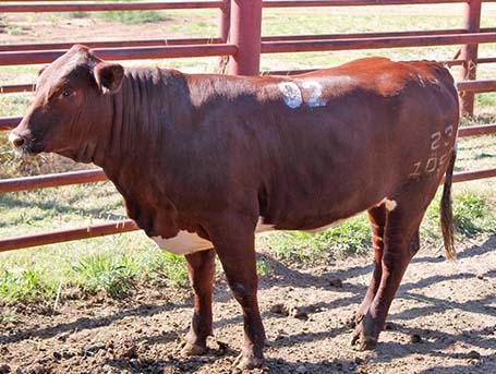 | Info 02 | This bull boasts a strong, masculine head, impressive depth, and smooth, free movement. A top stud bull prospect. |